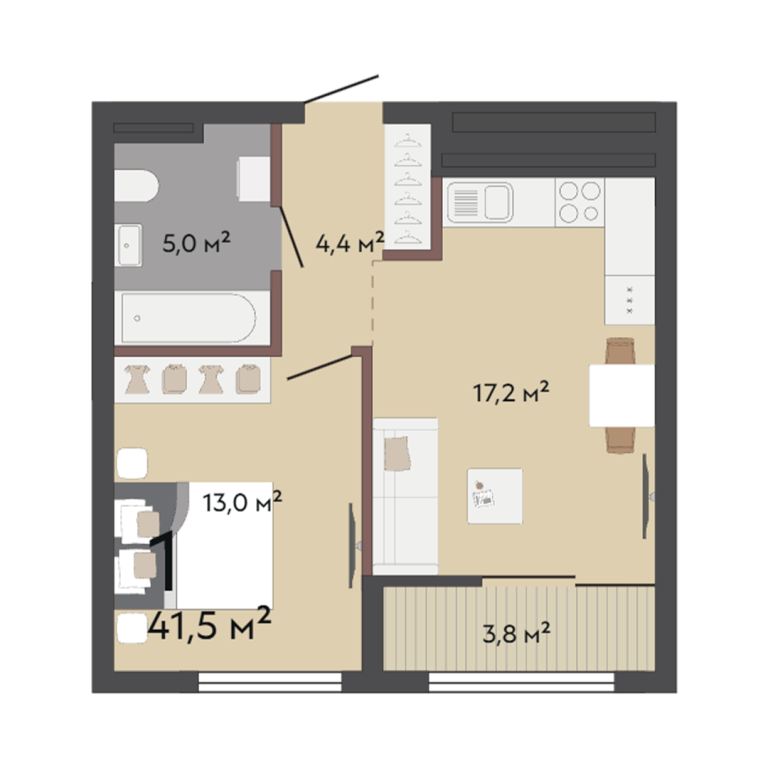 | Общая площадь: | 41.5 м2 |