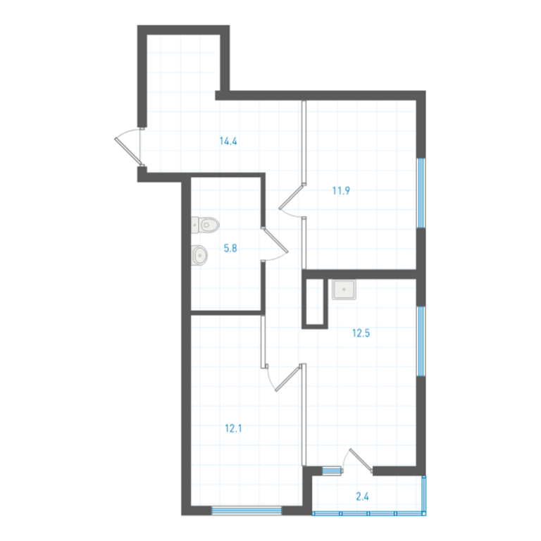 - 59.1 м2