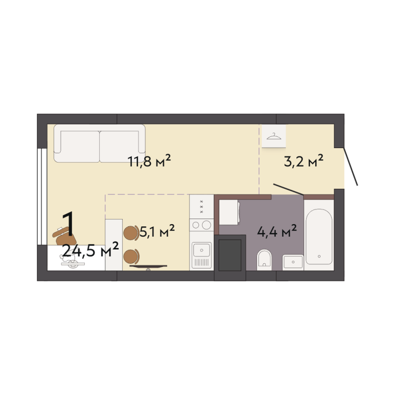 | Общая площадь: | 24.5 м2 |