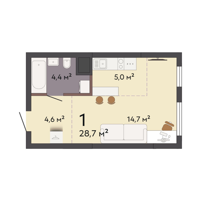 | Общая площадь: | 28.7 м2 |