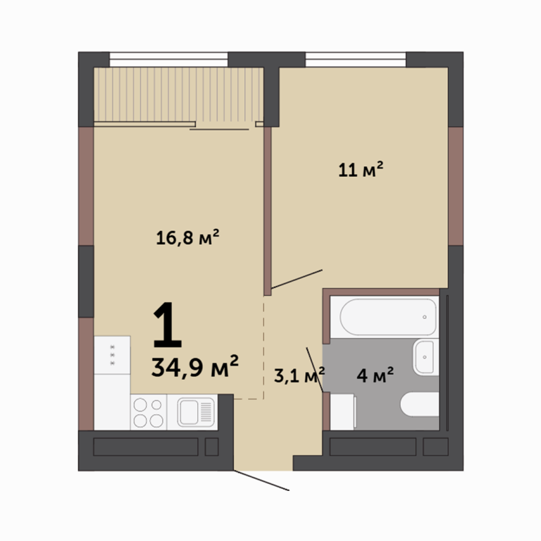| Общая площадь: | 34.9 м2 |