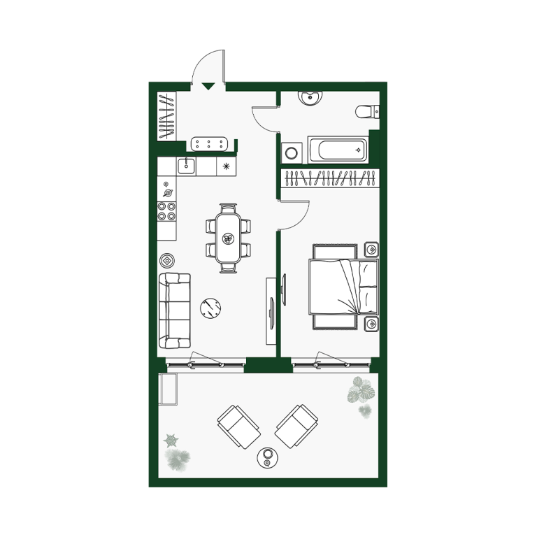 | Тип квартиры: | 1-комнатные |