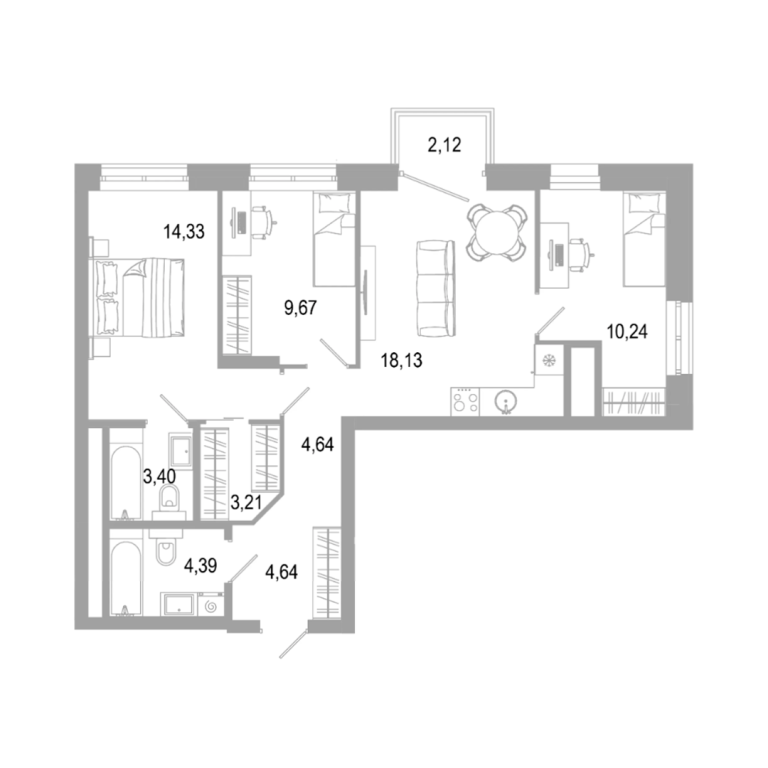 - 59.1 м2