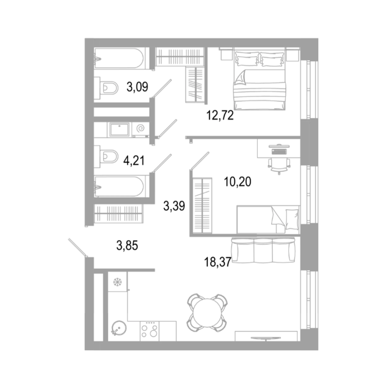 Эргономичность и удобство в каждом квадратном метре — основа планировочных решений в квартале «РАЗУМ на Малышева». Для каждого сценария жизни найдется планировка: представлены десятки вариантов от 29,92 м² до 84,88 м². Квартиры с террасами размещены на верхних этажах домов. Терраса — это дополнительное пространство для слияния с природой.