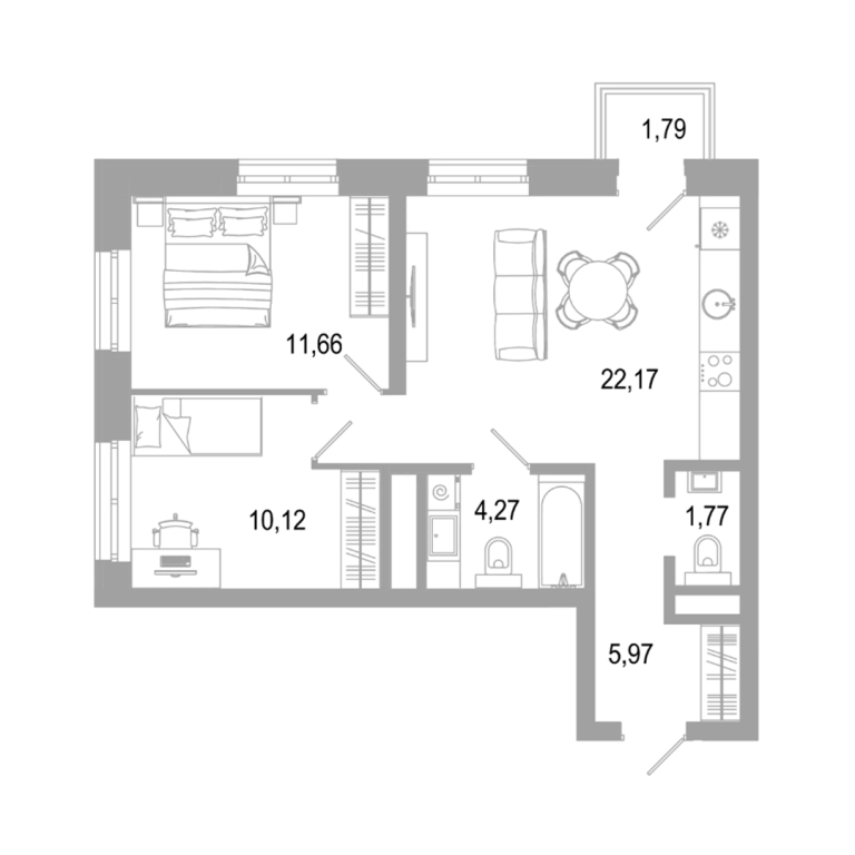 - 59.1 м2
