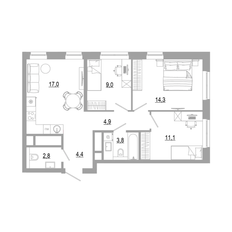В комплексе представлено 25 планировок с площадью квартир от 21 м² до 65 м² для разных жизненных сценариев жизни: