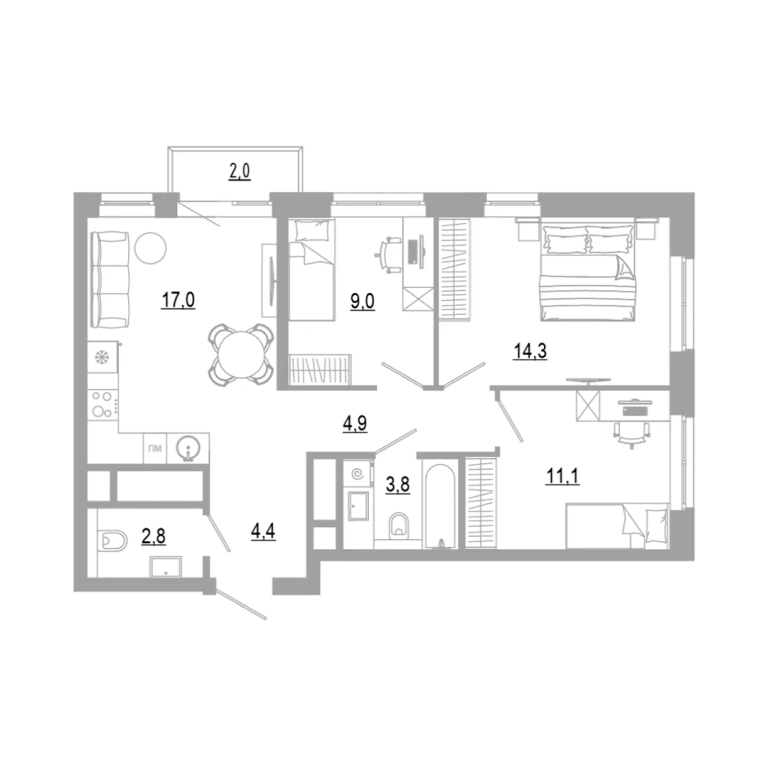 В комплексе представлено 25 планировок с площадью квартир от 21 м² до 65 м² для разных жизненных сценариев жизни: