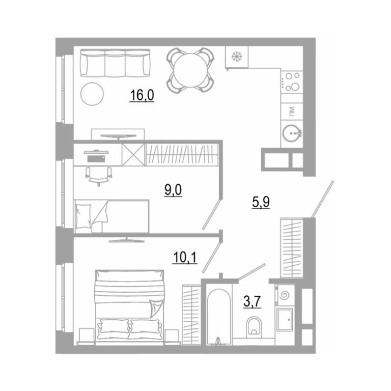 - 59.1 м2