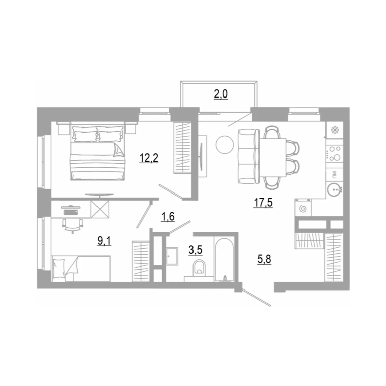 - 59.2 м2