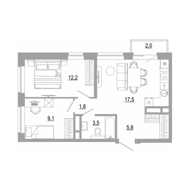 В комплексе представлено 25 планировок с площадью квартир от 21 м² до 65 м² для разных жизненных сценариев жизни: