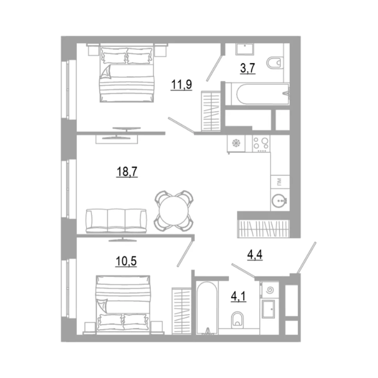 В комплексе представлено 25 планировок с площадью квартир от 21 м² до 65 м² для разных жизненных сценариев жизни: