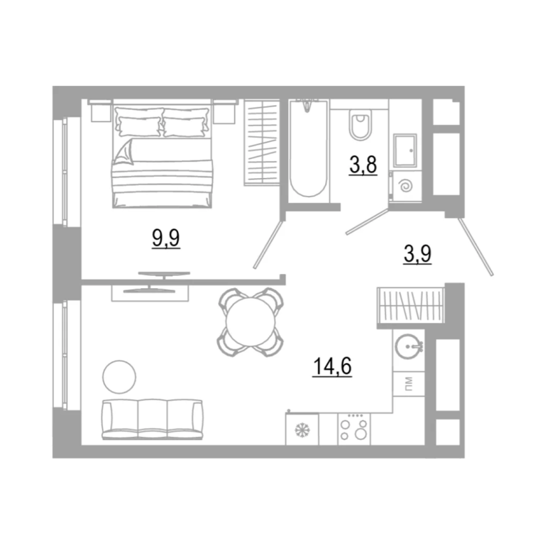 В комплексе представлено 25 планировок с площадью квартир от 21 м² до 65 м² для разных жизненных сценариев жизни: