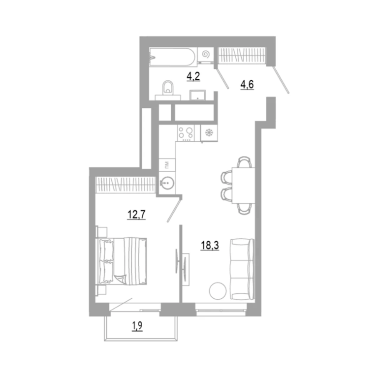 В комплексе представлено 25 планировок с площадью квартир от 21 м² до 65 м² для разных жизненных сценариев жизни: