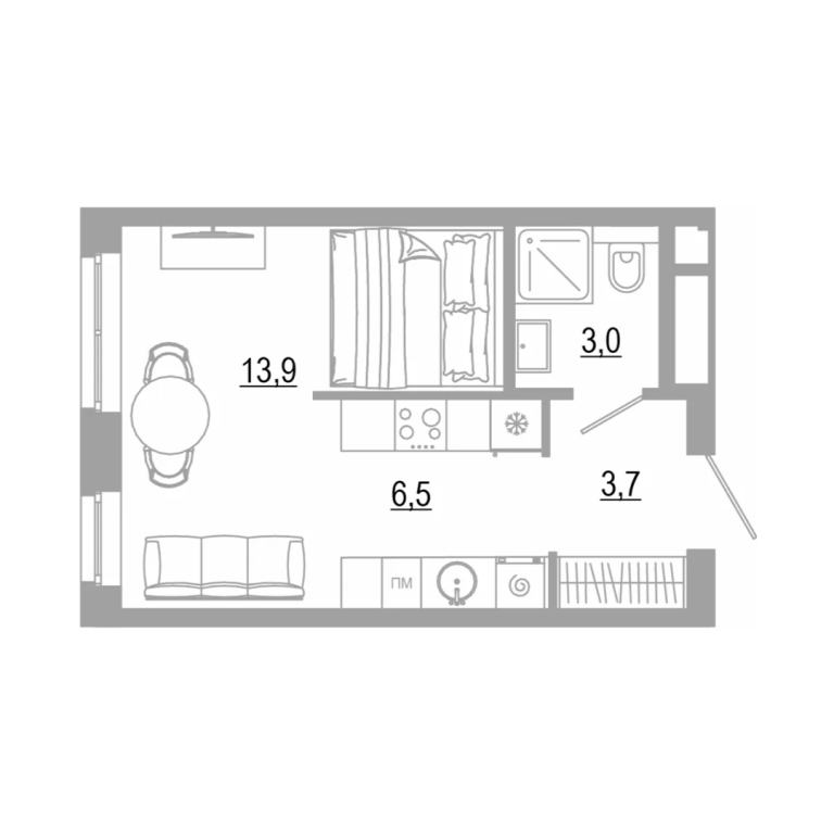 В комплексе представлено 25 планировок с площадью квартир от 21 м² до 65 м² для разных жизненных сценариев жизни: