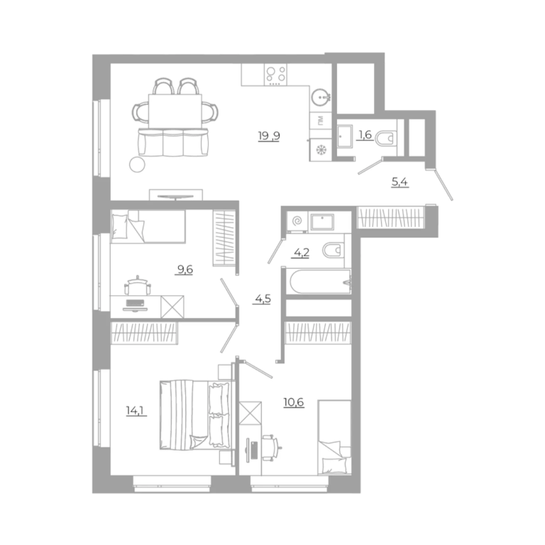 - 59.1 м2
