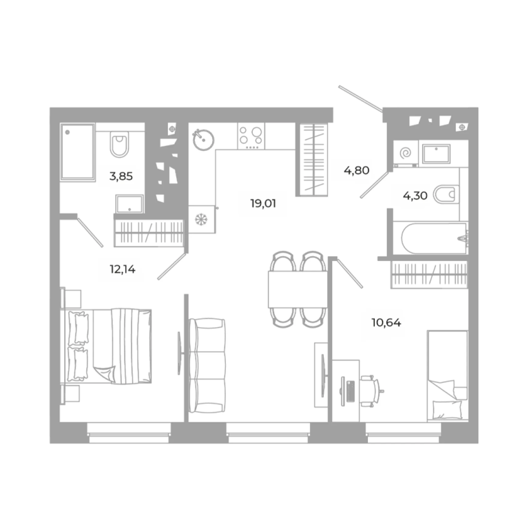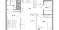 В проекте 25 планировочных решений: от уютных студий от 21,51 м² до квартир с тремя спальнями и кухней-гостиной до 66,58 м² с функциональным разделением на гостевую и приватные зоны.