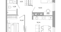 В проекте 25 планировочных решений: от уютных студий от 21,51 м² до квартир с тремя спальнями и кухней-гостиной до 66,58 м² с функциональным разделением на гостевую и приватные зоны.