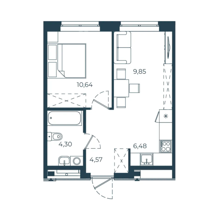 В проекте 25 планировочных решений: от уютных студий от 21,51 м² до квартир с тремя спальнями и кухней-гостиной до 66,58 м² с функциональным разделением на гостевую и приватные зоны.