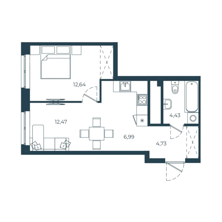В проекте 25 планировочных решений: от уютных студий от 21,51 м² до квартир с тремя спальнями и кухней-гостиной до 66,58 м² с функциональным разделением на гостевую и приватные зоны.