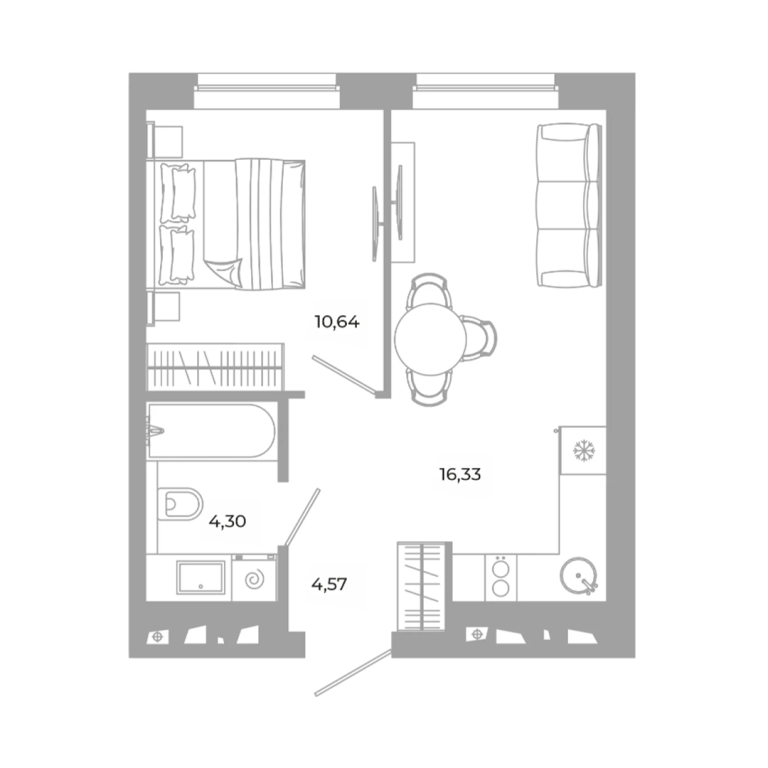 В проекте 25 планировочных решений: от уютных студий от 21,51 м² до квартир с тремя спальнями и кухней-гостиной до 66,58 м² с функциональным разделением на гостевую и приватные зоны.