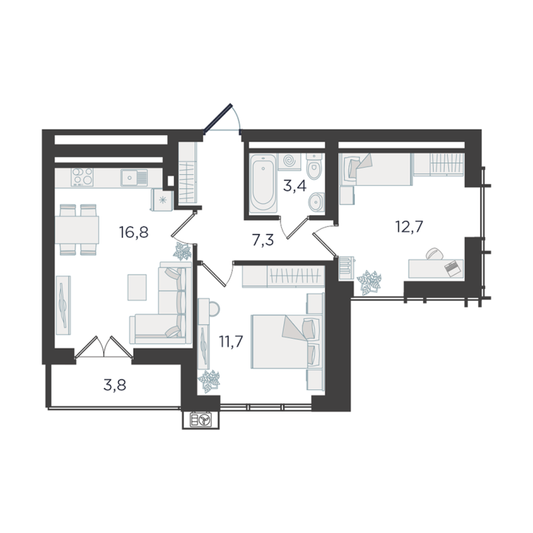 | Общая площадь: | 54.9 м2 |