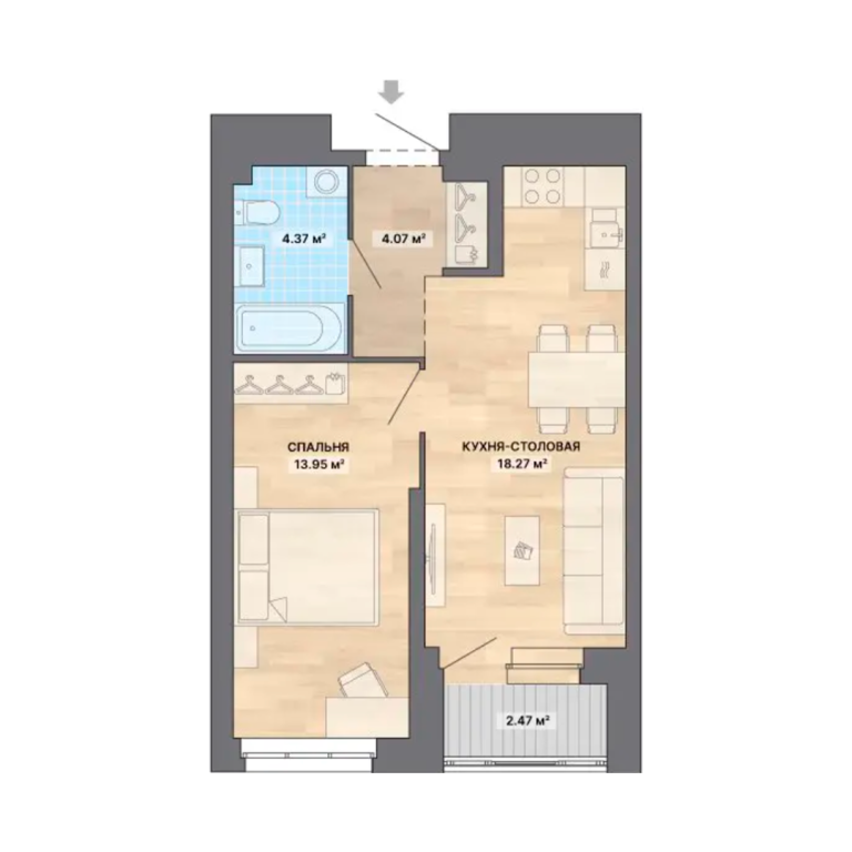 | Общая площадь: | 43.13 м2 |