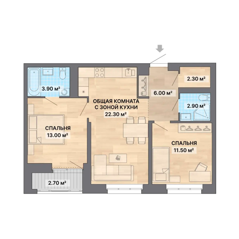 | Общая площадь: | 64.6 м2 |