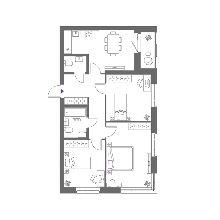 | Тип квартиры: | 3-комнатные |