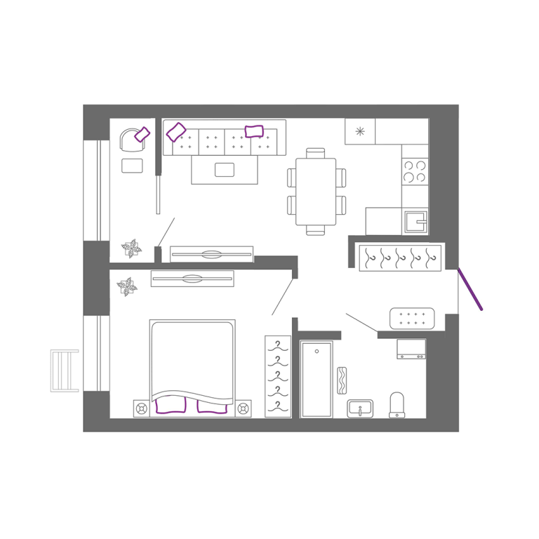 | Тип квартиры: | 1-комнатные |