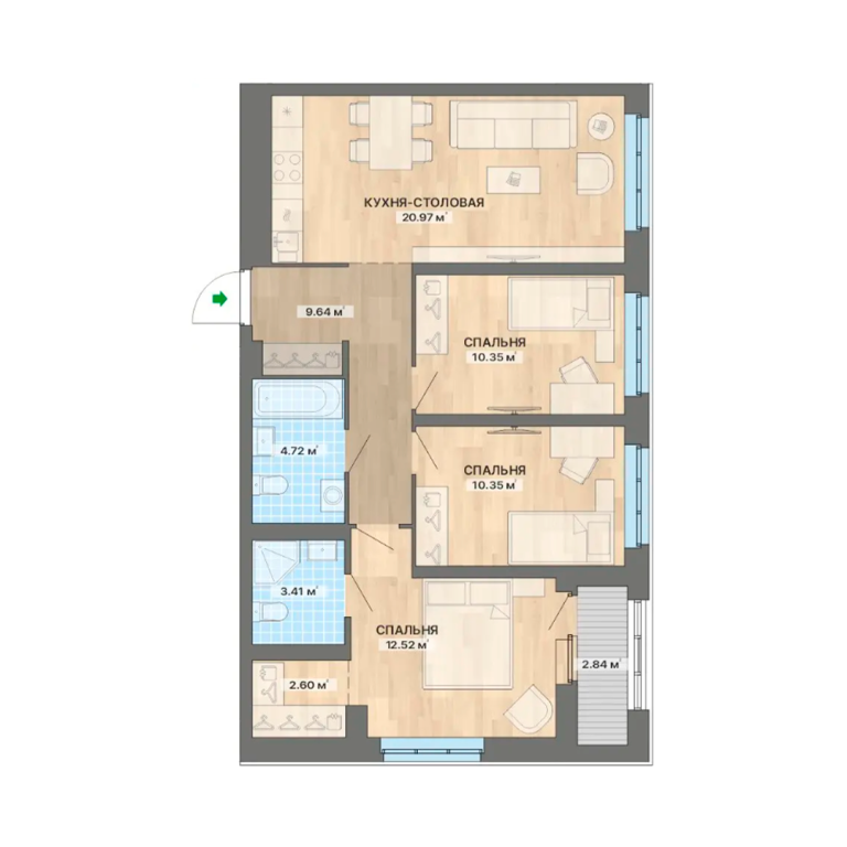| Тип квартиры: | 3-комнатные |