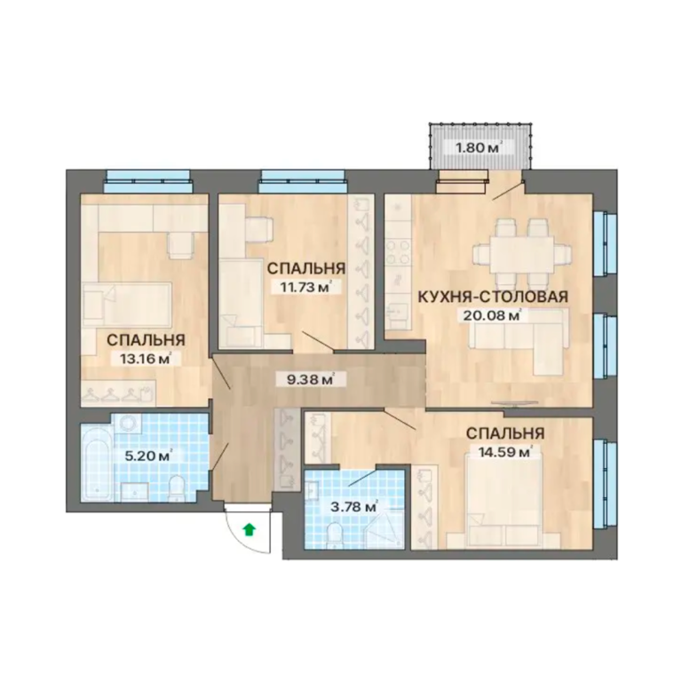 | Общая площадь: | 79.72 м2 |