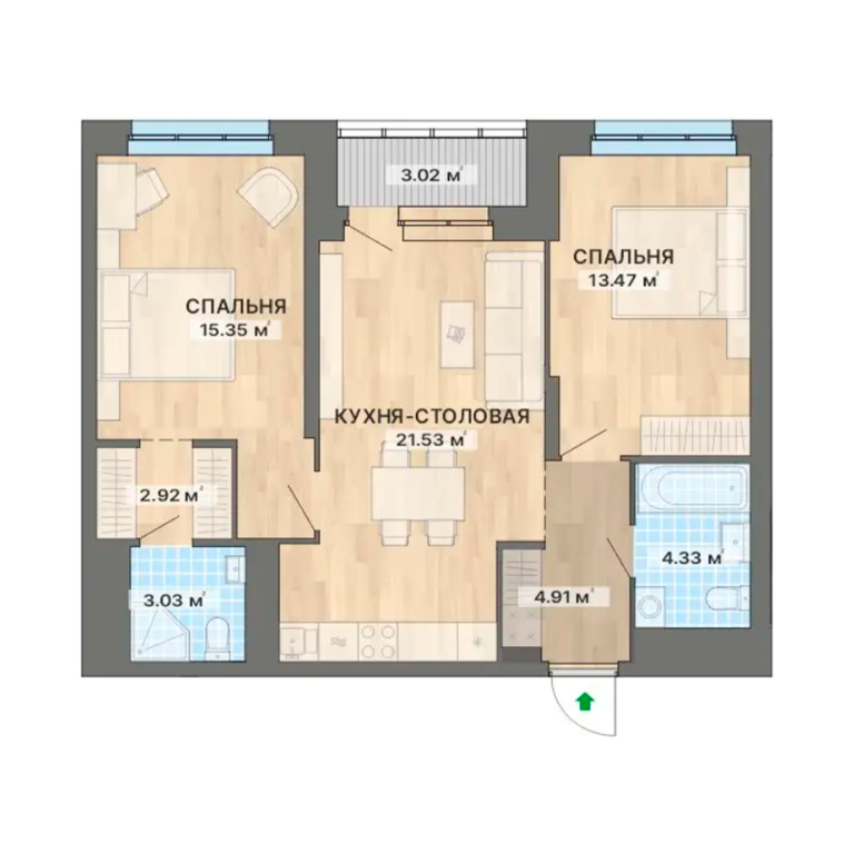 | Количество комнат: | 2 |