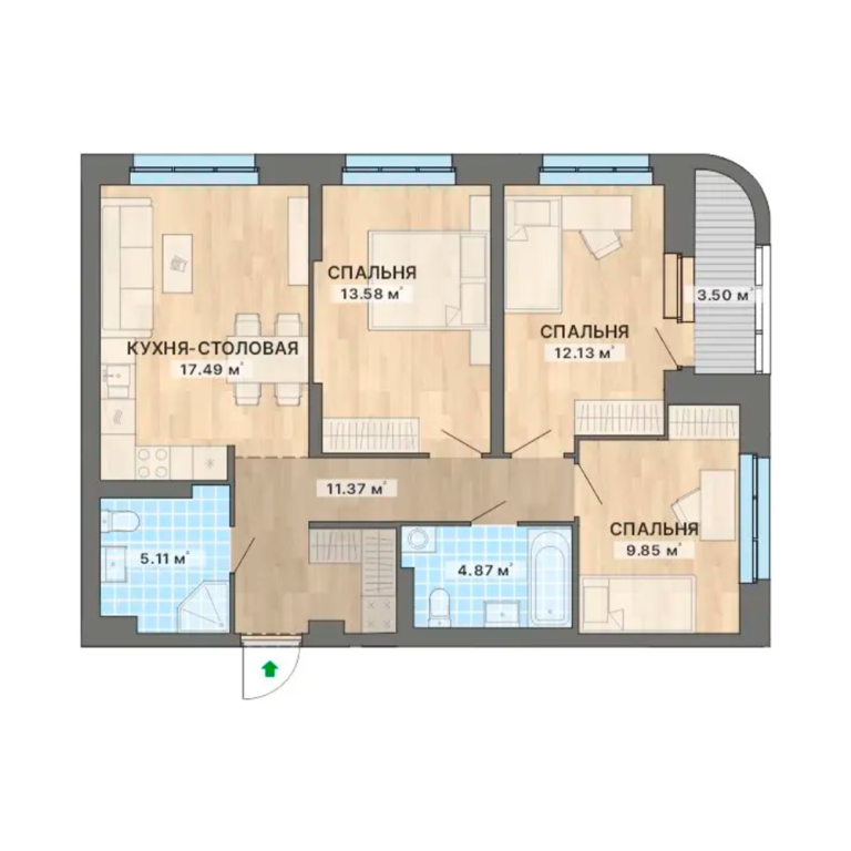| Тип квартиры: | 3-комнатные |