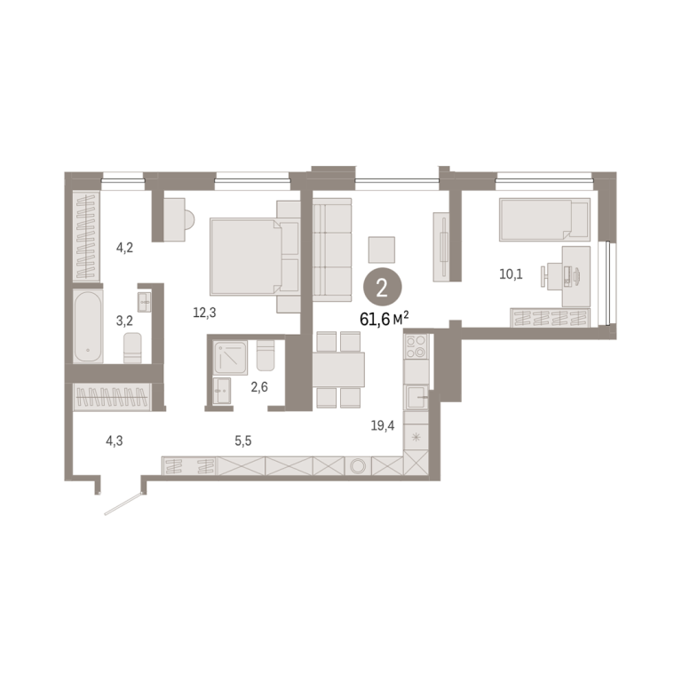 | Общая площадь: | 61.6 м2 |
