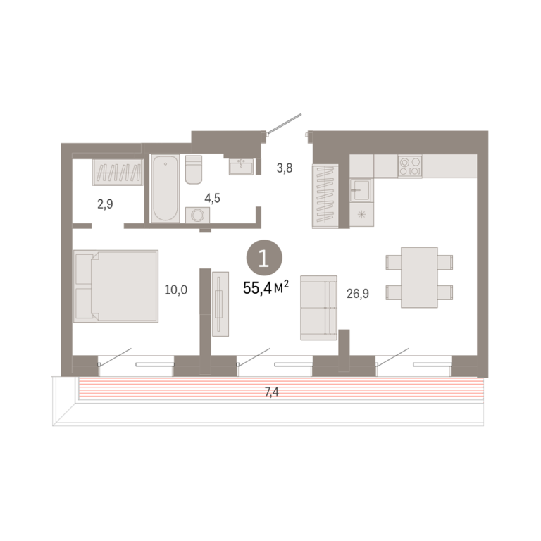 | Общая площадь: | 55.4 м2 |