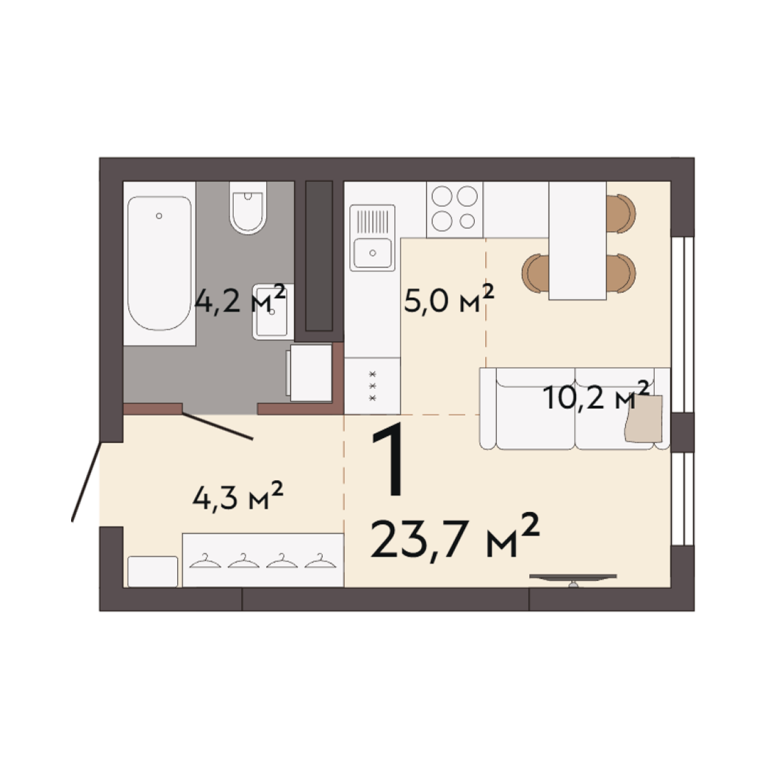 | Общая площадь: | 23.7 м2 |