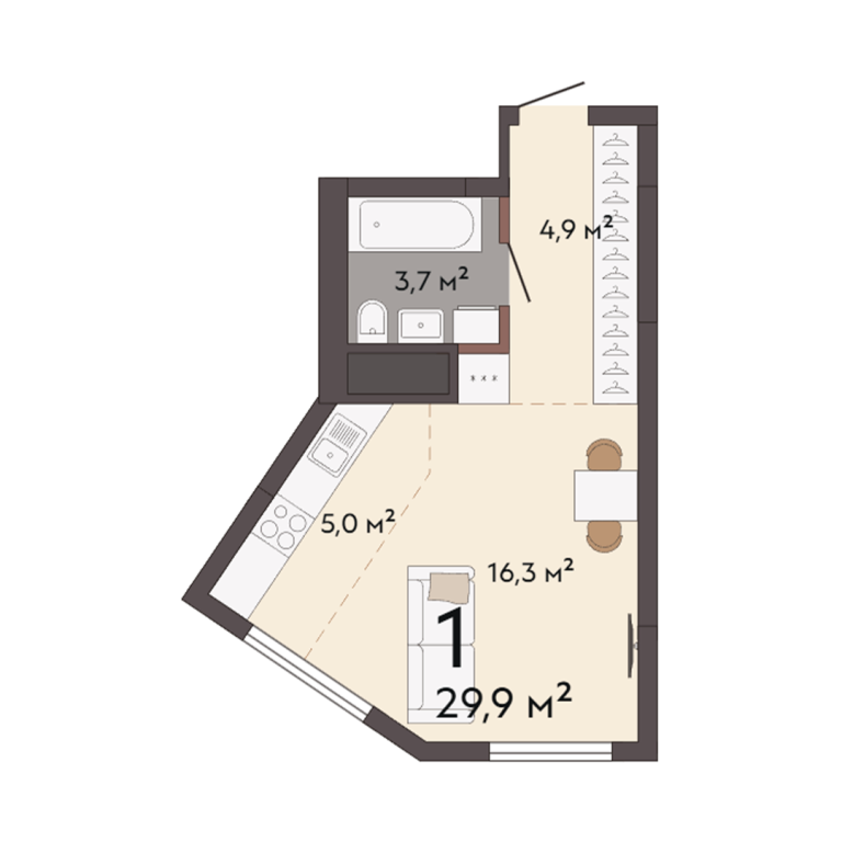 | Общая площадь: | 29.9 м2 |