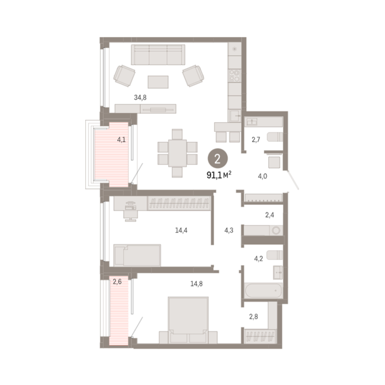 | Общая площадь: | 91.1 м2 |