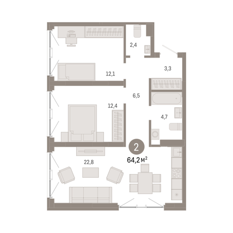| Общая площадь: | 64.2 м2 |