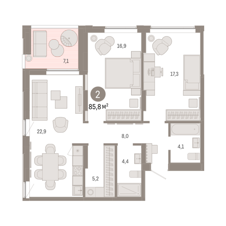 | Общая площадь: | 85.8 м2 |