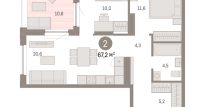 | Общая площадь: | 67.2 м2 |