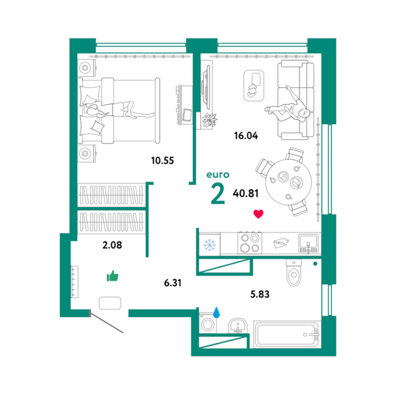 | Общая площадь: | 40.81 м2 |