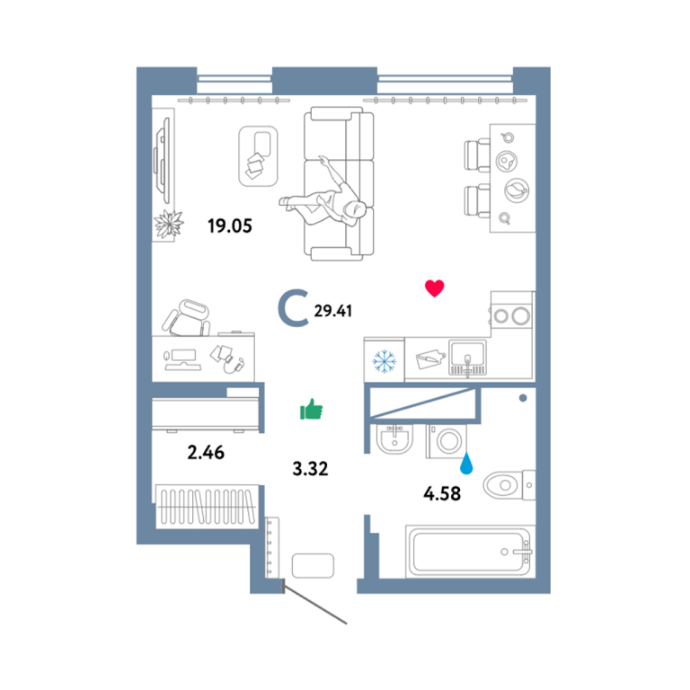 | Общая площадь: | 29.41 м2 |