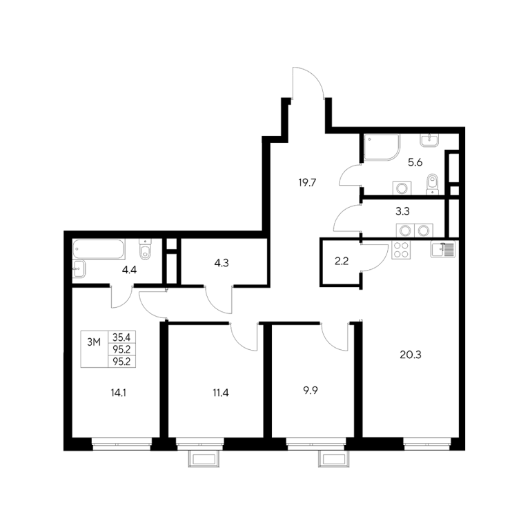 | Общая площадь: | 95.2 м2 |
