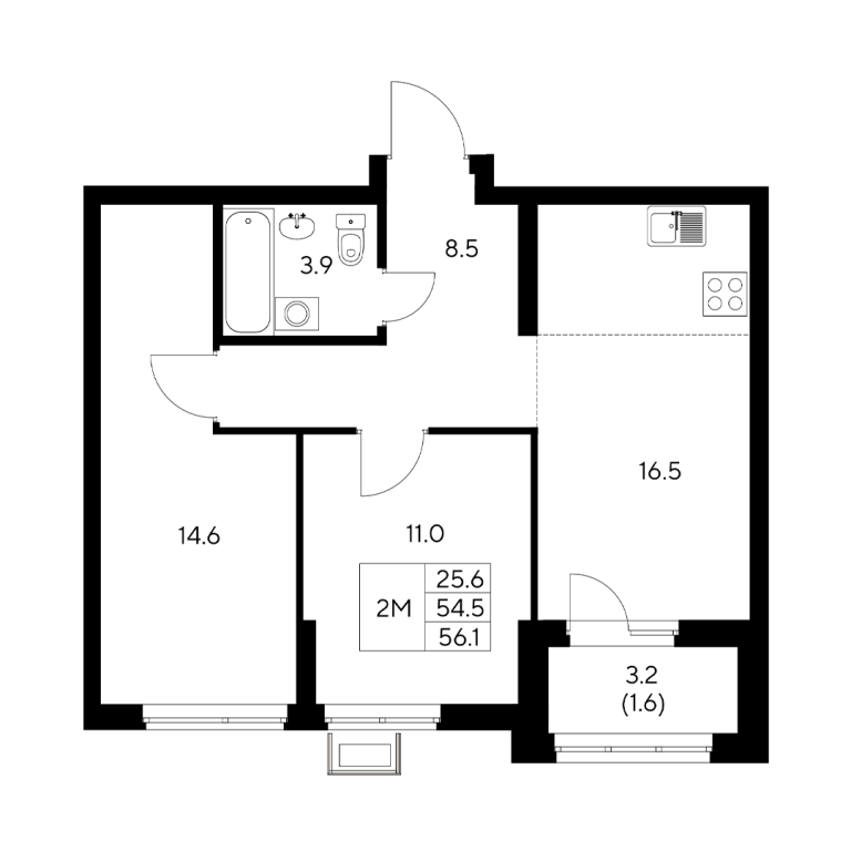 | Общая площадь: | 56.1 м2 |