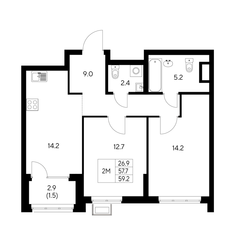 - 59.2 м2