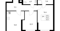 | Общая площадь: | 61.3 м2 |