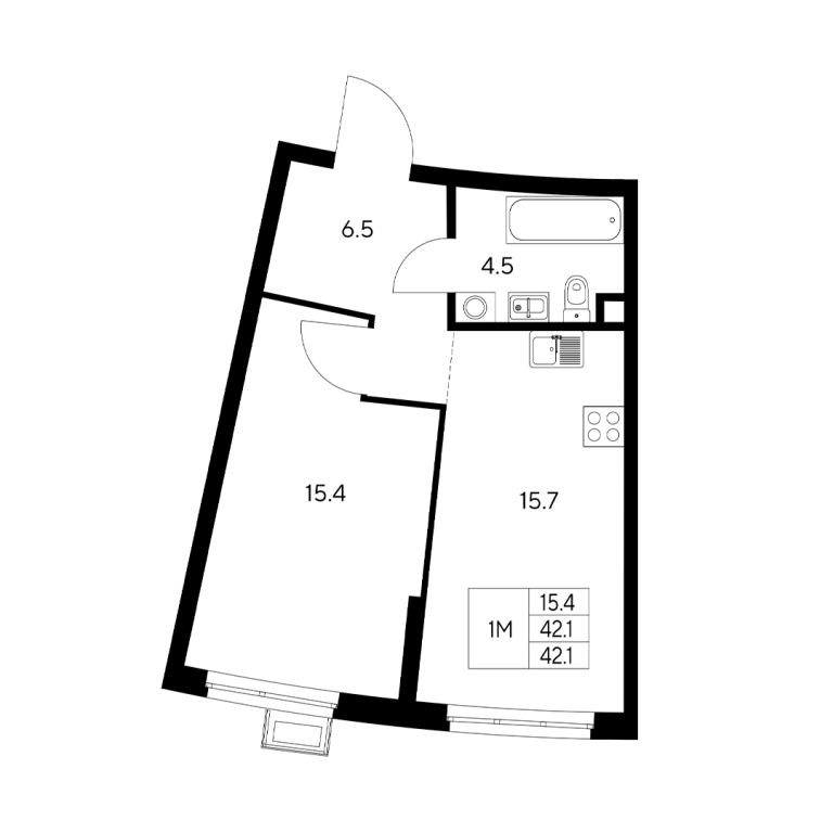 | Общая площадь: | 42.1 м2 |