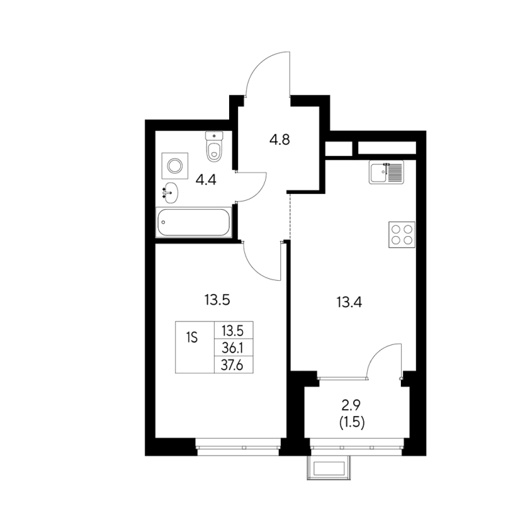 | Общая площадь: | 37.6 м2 |