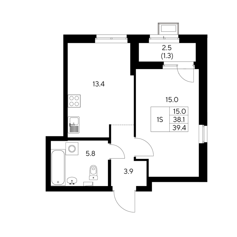 | Общая площадь: | 39.4 м2 |